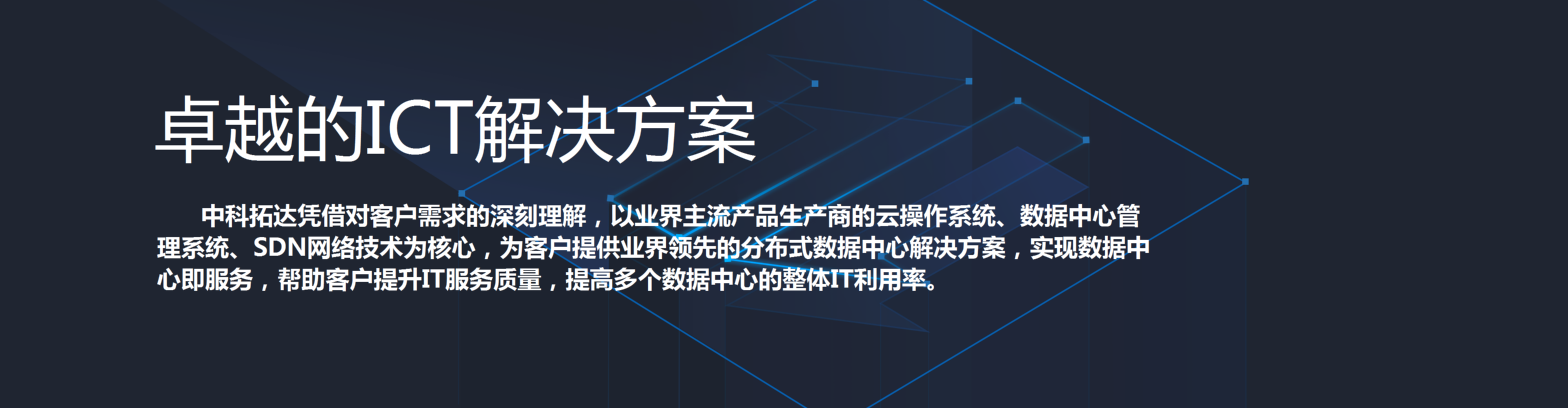 北京中科拓達(dá)科技有限公司(以下簡(jiǎn)稱(chēng)“中科拓達(dá)”)成立于2012年10月,注冊(cè)資金2000萬(wàn)。公司定位于為行業(yè)用戶信息化業(yè)務(wù)提供產(chǎn)品、研發(fā)及服務(wù)的綜合解決方案,是專(zhuān)業(yè)從事信息化系統(tǒng)集成的整體項(xiàng)目建設(shè)、項(xiàng)目實(shí)施、運(yùn)行維護(hù)、故障處理、咨詢培訓(xùn)等內(nèi)容的北京市高新技術(shù)企業(yè)。